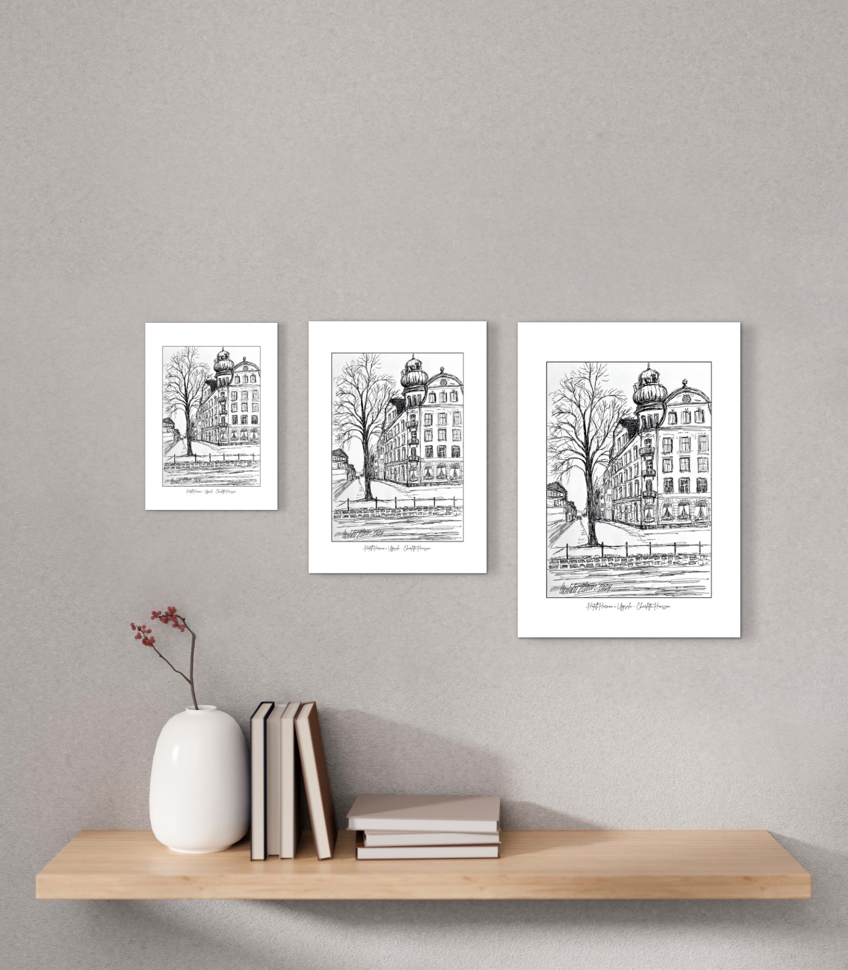 Det vackra hotellet i Uppsala som öppnade 1907. Ett tryck från original tuschmålning på tjockt matt papper